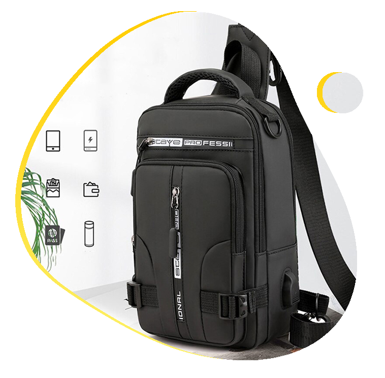 ნეილონის ჩანთა, ნივთების ოპტიმალური გადანაწილება. ჩანთა დამზადებულია წყალგაუმტარი ნეილონისგან. მშვიდად ატარეთ წვიმასი და არ იღელვოთ რომ თქვენი ნივთები დასველდება. ჩაშენებული USB პორტი. საშუალებას მოგცემთ ფოვერბანკის დახმარებით უპრობლემოდ დატენოთ თქვენი ტელეფონი